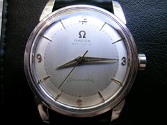 Omega Seamaster SS mid size Auto 1950's (57) round cases with plexi right up to the edge, smaller and less pronounced lugs, wider hands and simple looking dials. |